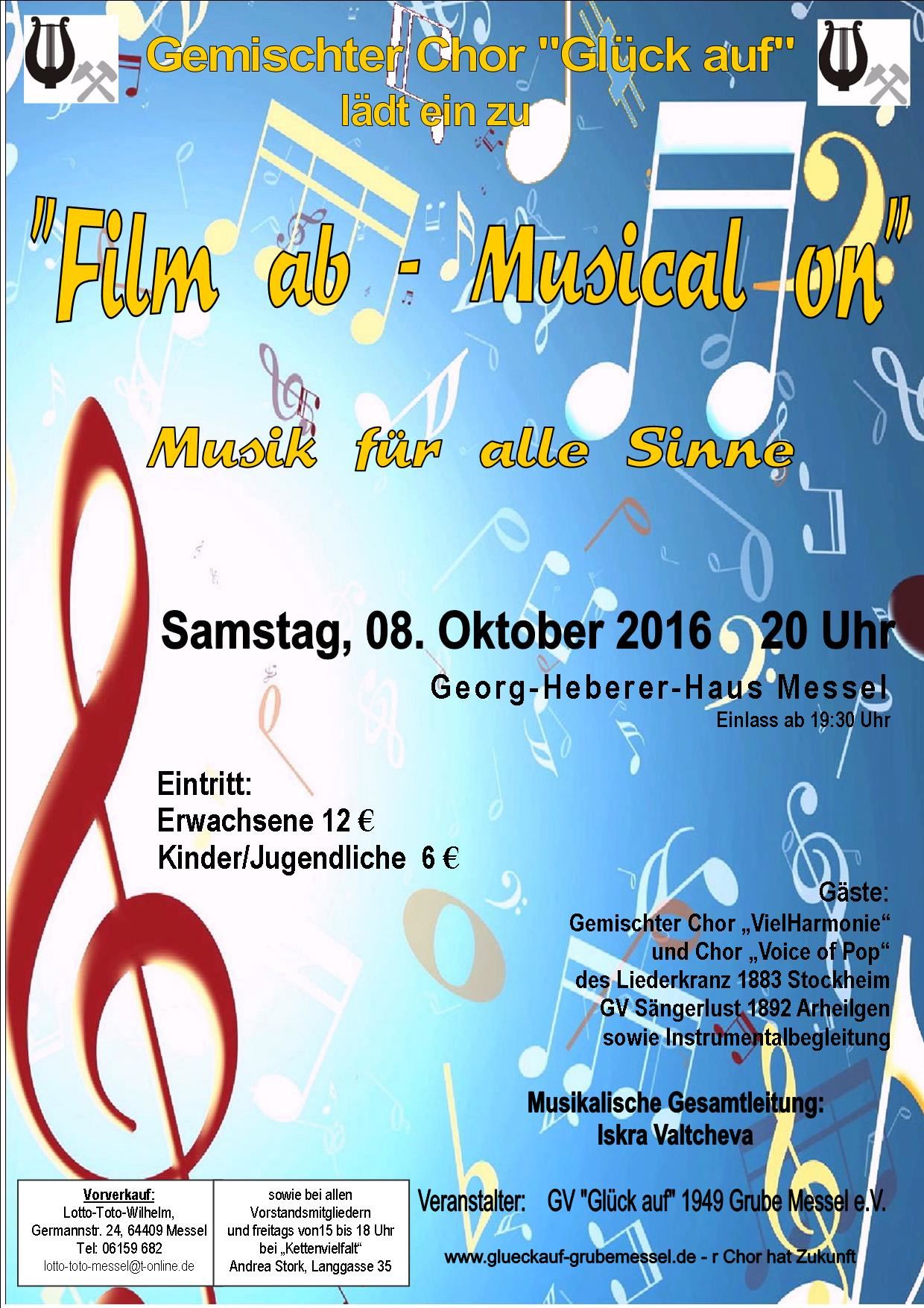 Unser Musicalerlebnis "Film ab - Musical on" am Samstag, 08.10.16, im ausverkauften Georg-Heberer-Haus ist Vergangenheit. Es war, so konnten wir es aus den Reaktionen unseres wunderbaren Publikums ersehen, ein voller Erfolg.